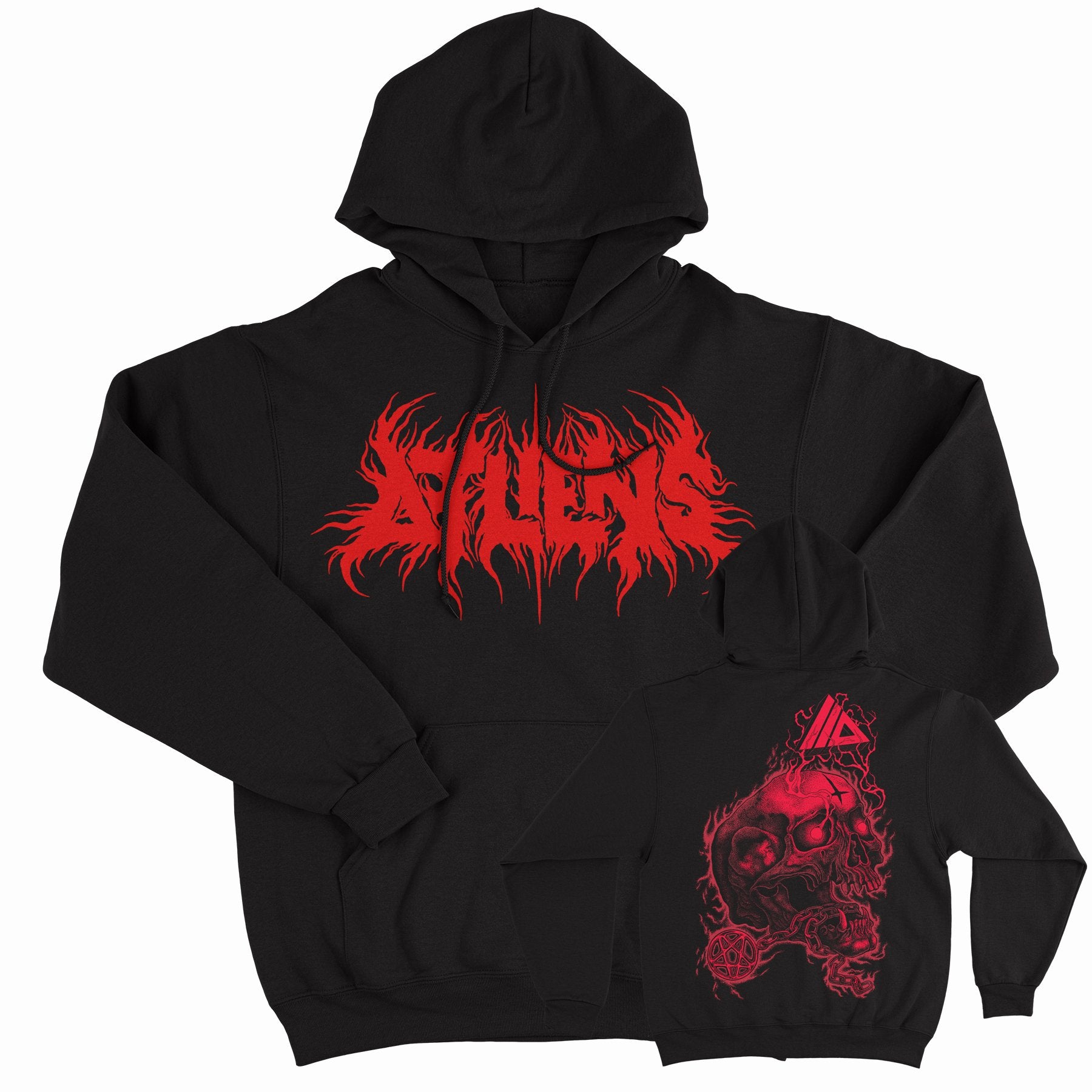 ATLiens "Red Skull" pullover hoodies. Printed on premium, cotton sweatshirts, featuring a front and back print.