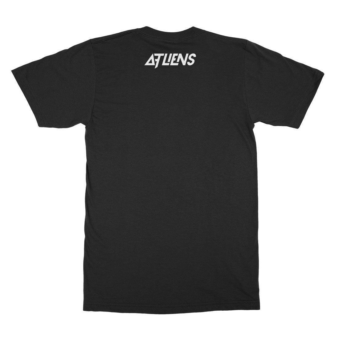 ATLiens "Space Death" premium tee. Printed on super soft, cotton t-shirts, featuring a front chest and back upper neck print.