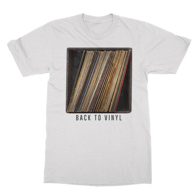 Back To Vinyl "Crate" tees are printed on premium, cotton tees and feature a front and back print.