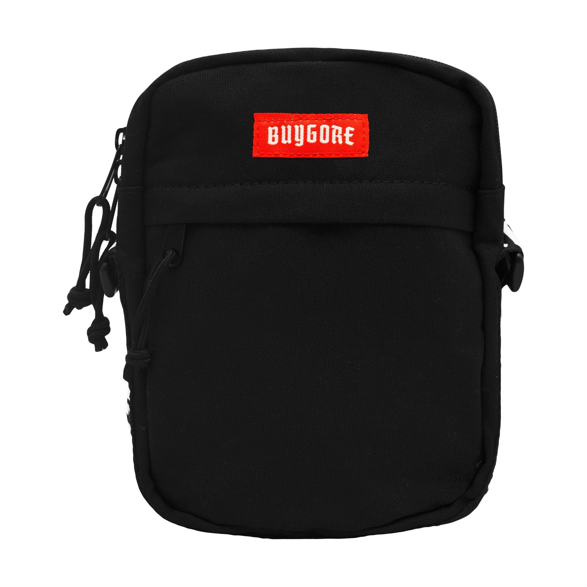 Buygore custom shoulder bag. Rugged, durable construction. Multi-compartments. Adjustable strap. Measures approximately 7x9"